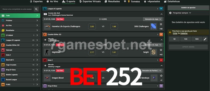 A aposta Bet252 oferece aos jogadores a experiência mais conveniente de apostas em eSports!